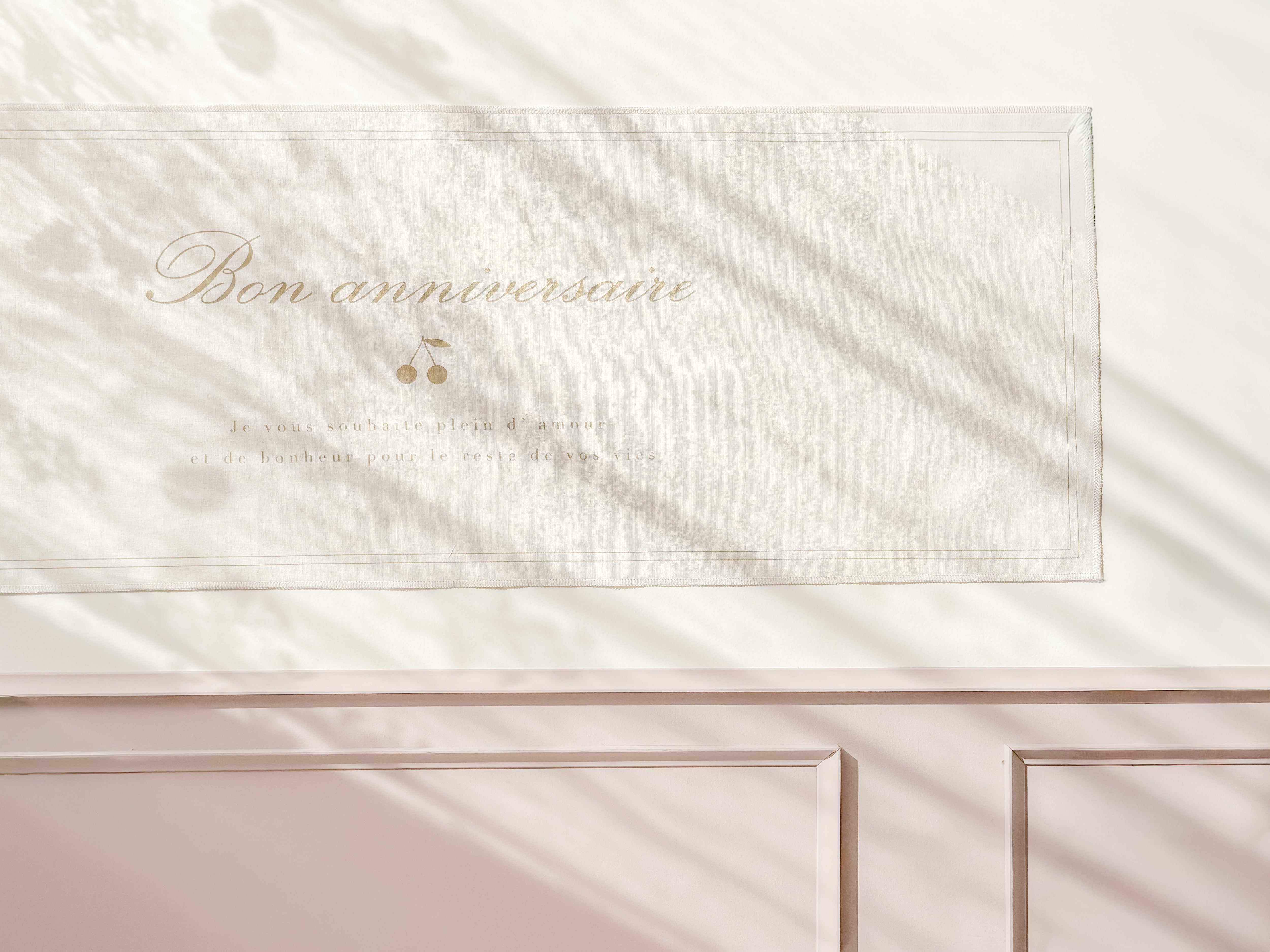 フランス語で綴られたメッセージは、派手すぎす、けれど印象的。