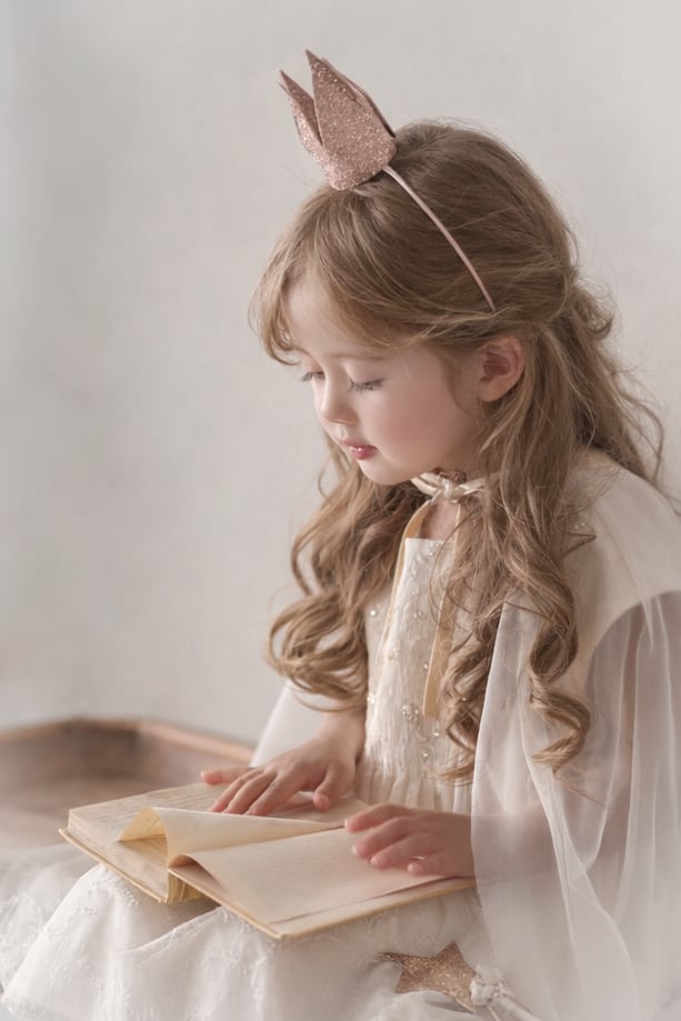 装いを完成させる小さなクラウン。